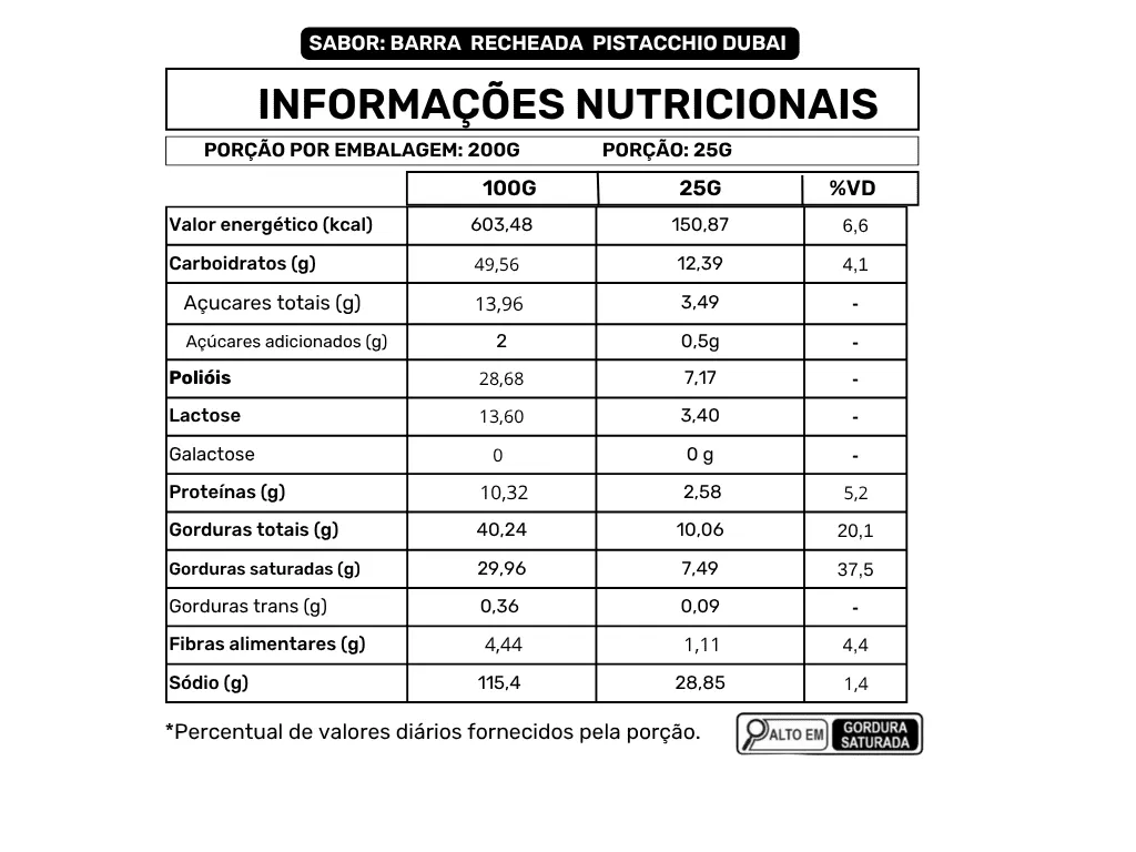 BARRA DUBAI - UNIDADE CONTÉM 200g