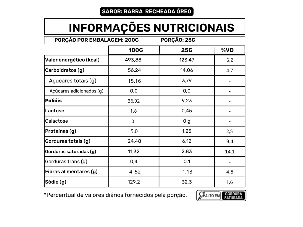 Alergênicos: Contém derivados de leite, trigo, soja e ovo. Pode conter amêndoa, castanha-de-caju, castanha-do-pará, avelã e aveia.