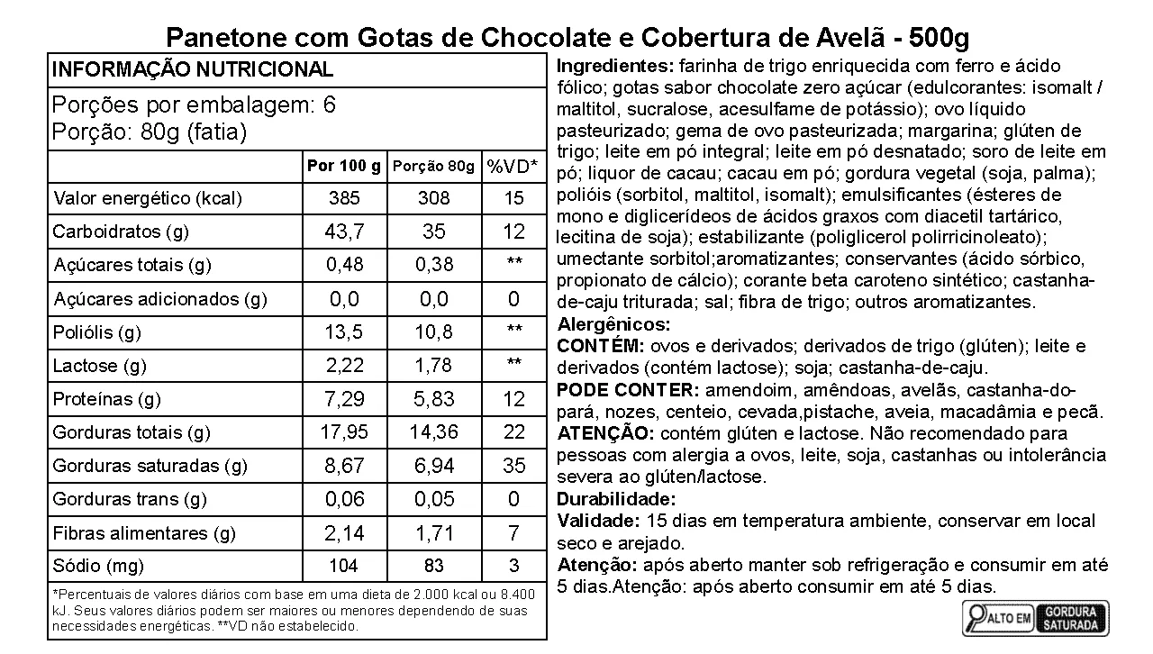 Ingredientes: farinha de trigo enriquecida com ferro e ácido fólico; gotas sabor chocolate zero