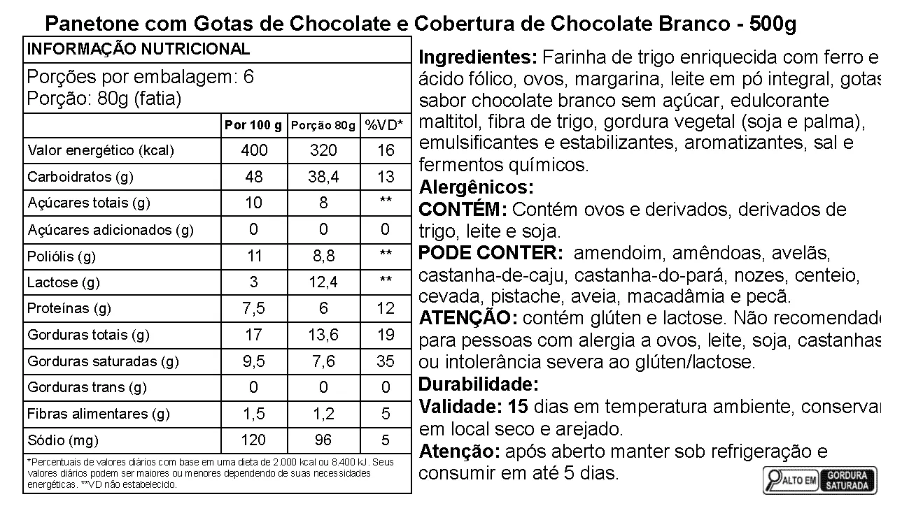 Já imaginou aquela massa de Panettone Fofinha e Macia feito com fermentação natural, repleto de Gotas de Chocolate e com uma cobertura Incrível cobertura de chocolate branco Zero Adição de açúcar.