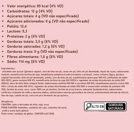 • Não contém glúten; pode conter traços devido à contaminação cruzada. Não indicado para pessoas com doença celíaca.